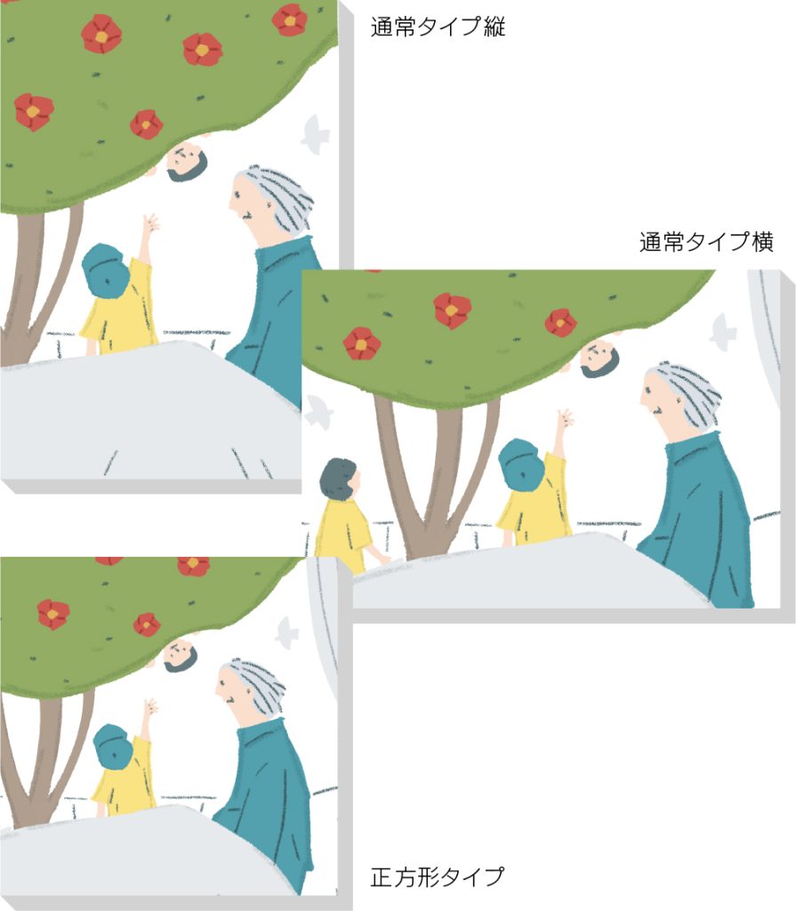 サイズは通常タイプと正方形タイプの2種類。サイズはそれぞれ2サイズご用意しております。また手描きではなくデジタルでの制作になりますので、複数枚での納品も承ります。